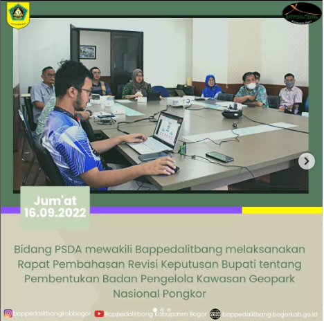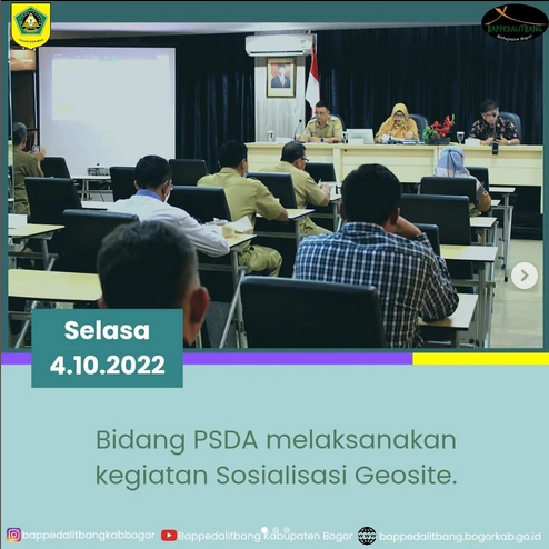 Bidang PSDA Bappedalitbang melaksanakan kegiatan Sosialisasi Geosite, yang berlangsung di Ruang Rapat Ciliwung tanggal 4 Oktober 2022. Tujuan dari sosialisasi tersebut adalah untuk menginformasikan kepada pemilik atau pengelola geosite yang berada da...